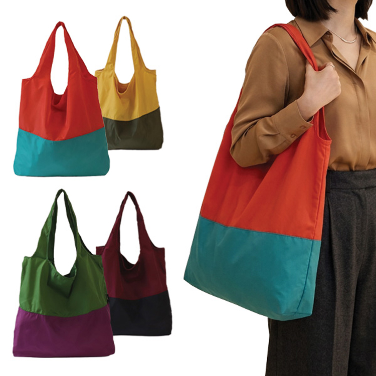 모모카멜 투톤 컬러 포켓 에코백 대형 시장가방 HE23 (45*36*12cm)
