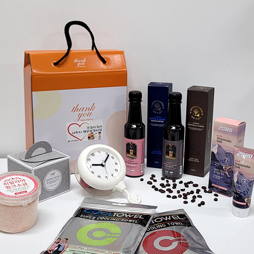 [선물세트 6종] 핑크소금 핑크솔트 치약 커피 흡착시계 쿨타올 쿨타월