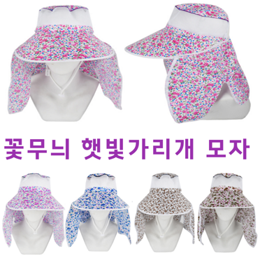 뜨거운 여름 꽃무늬 햇빛가리개 모자 썬캡 밭일모자 낚시 캐디 농사 해수욕장 일산 등산 햇빛 차단 똑딱이 조절끈 5컬러