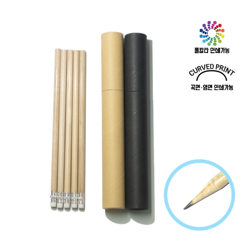 원목 원형 지우개 연필 5본입 원통 세트