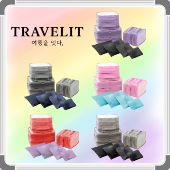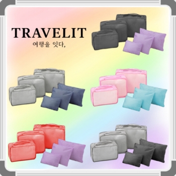 [트래블잇] 내맘대로 8컬러 믹스 여행용파우치 2종세트 캐리어정리 실속구성 2P